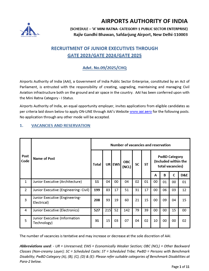 | भर्ती का नाम : | AAI Junior Executive Vacancy 2025 |