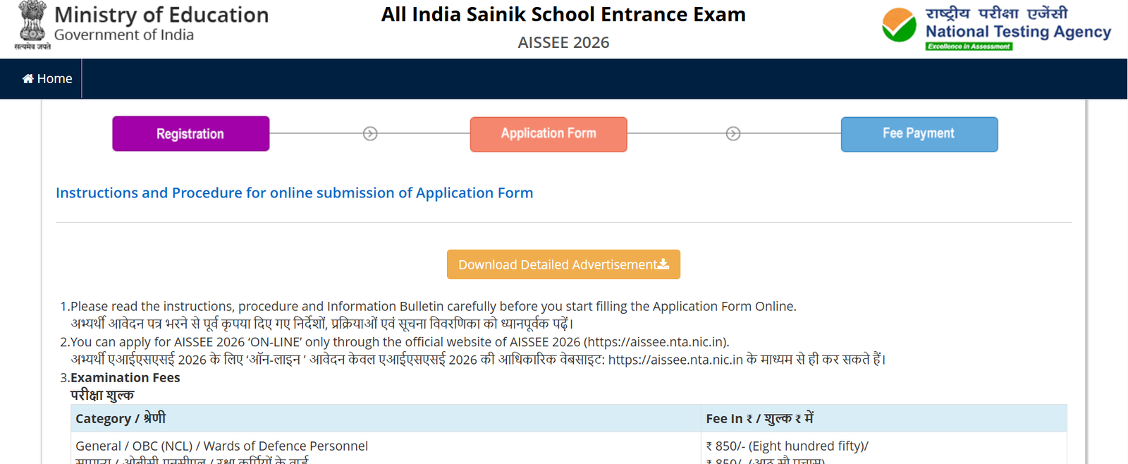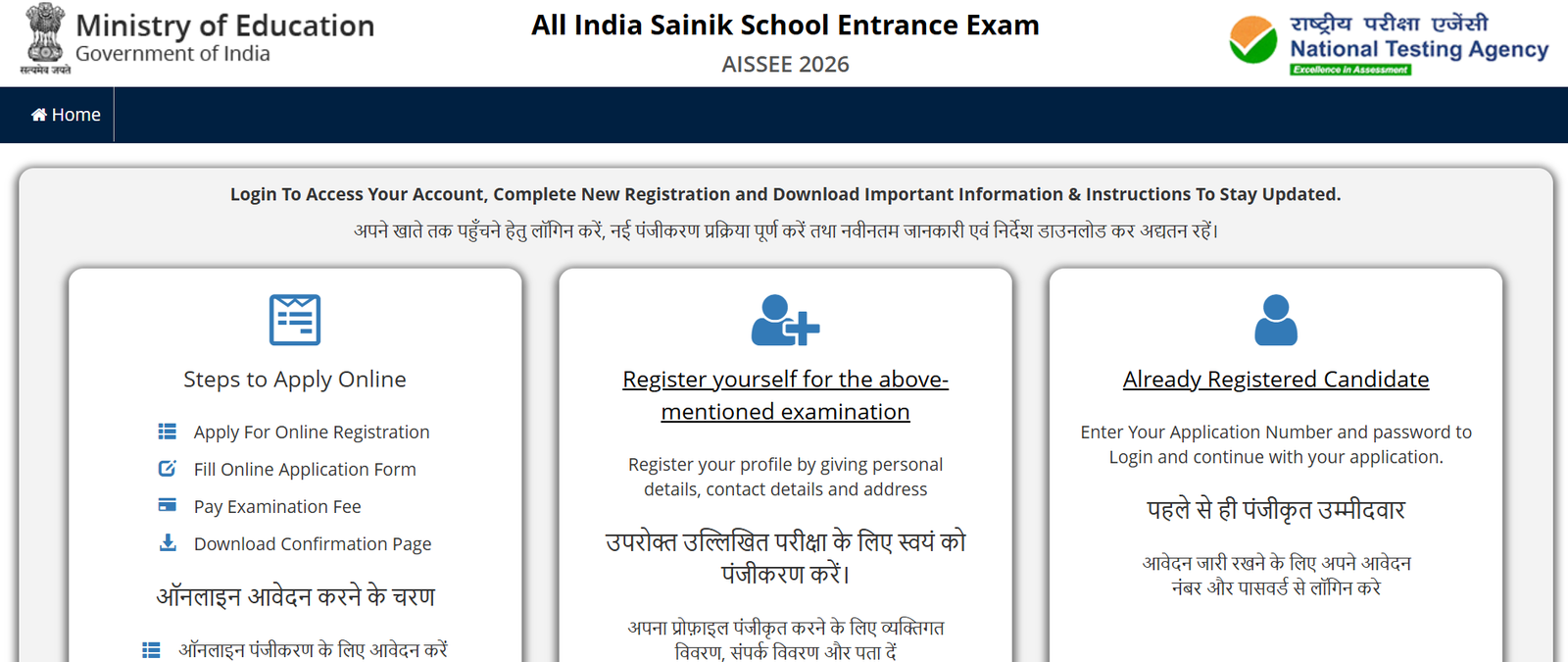 • सबसे पहले AISSEE के आधिकारिक वेबसाइट पर जाएं |