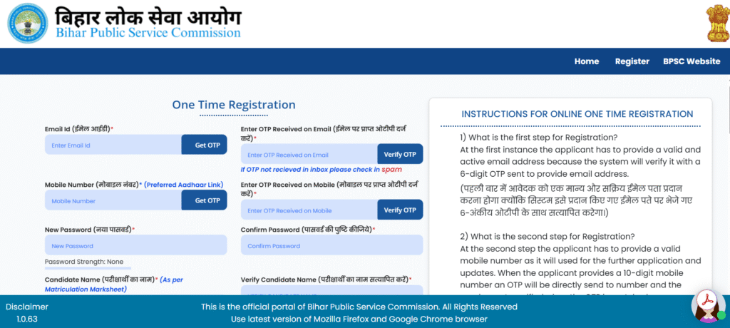 • पंजीकरण (OTR Registration) करें