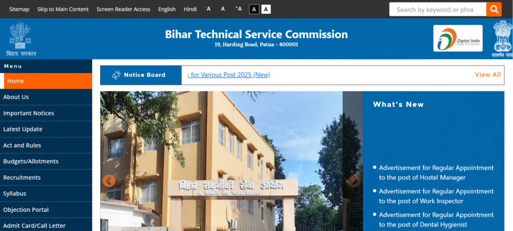 - होम पेज पर Bihar BTSC Work Inspector Vacancy 2025 पर क्लिक करें।