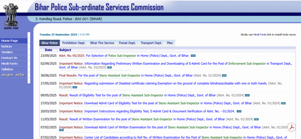 - होम पेज पर Daroga SI Bharti 2025 पर क्लिक करें।