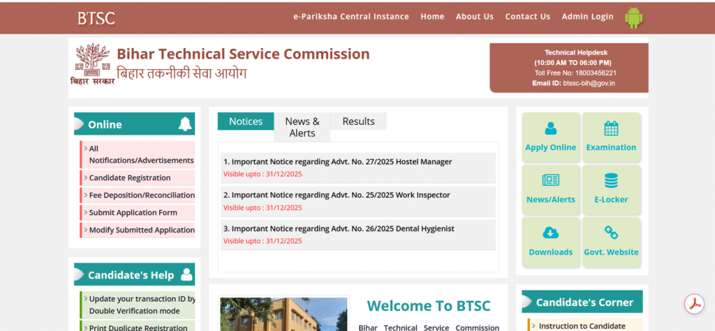 | विभाग का नाम : | बिहार तकनीकी सेवा आयोग (BTSC – Bihar Technical Service Commission) |