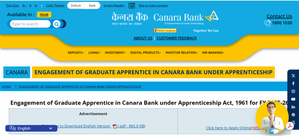 - होम पेज पर Canara Bank Apprentice Recruitment 2025 पर क्लिक करें।