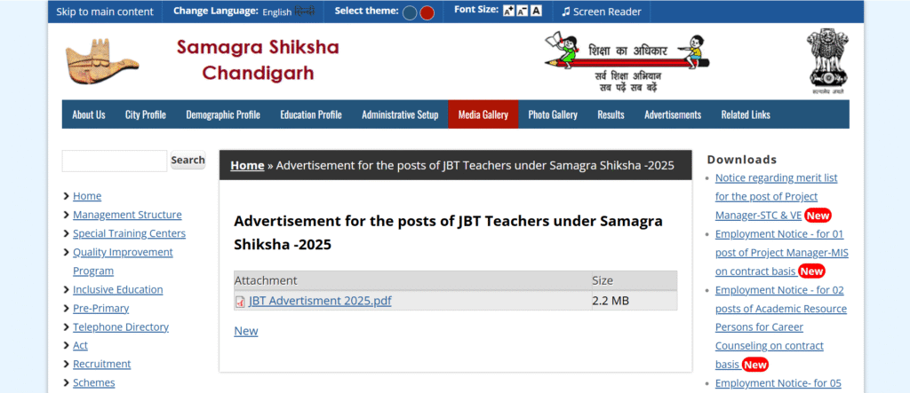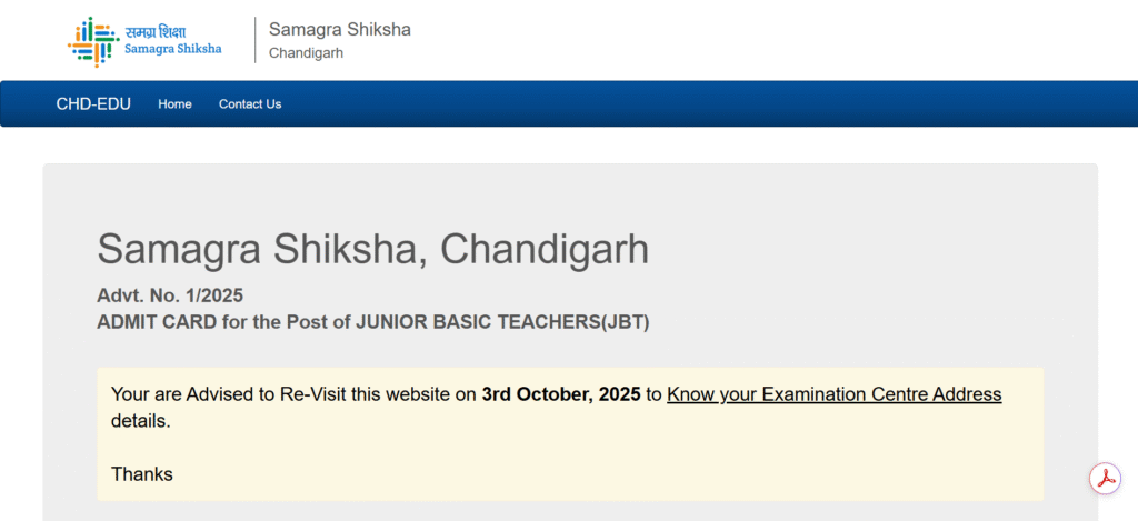 - होम पेज पर Chandigarh JBT Teacher Admit Card 2025 पर क्लिक करें।