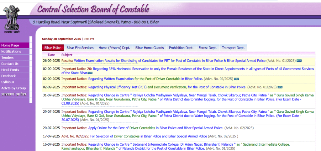 • होम पेज पर CSBC Bihar Police Recruitment 2025 पर क्लिक करें।
