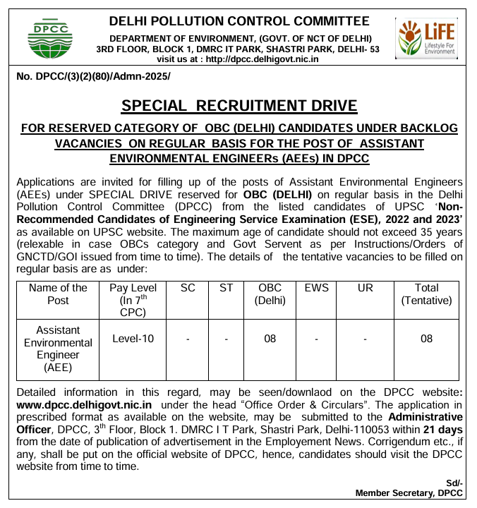 DPCC AEE Recruitment 2025 : अगर आप भी अपना करियर को Delhi Pollution Control Committee में बनाना चाहते है तो उन सभी इंजीनियरिंग पास अभियर्थियों के लिए बहुत ही बढ़िया अवसर है | अर्थात आप इस करना चाहते है तो समय रहते इस आवेदन को क्र ले ताकि अंतिम से में टेक्निकल प्रॉब्लम आने लगते है इसलिए आप इस फॉर्म तारीख से पहले करे |