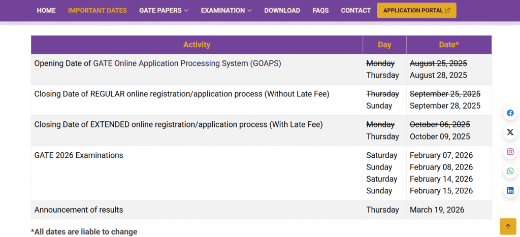 महत्वपूर्ण तिथियाँ : GATE 2026 Notification Released