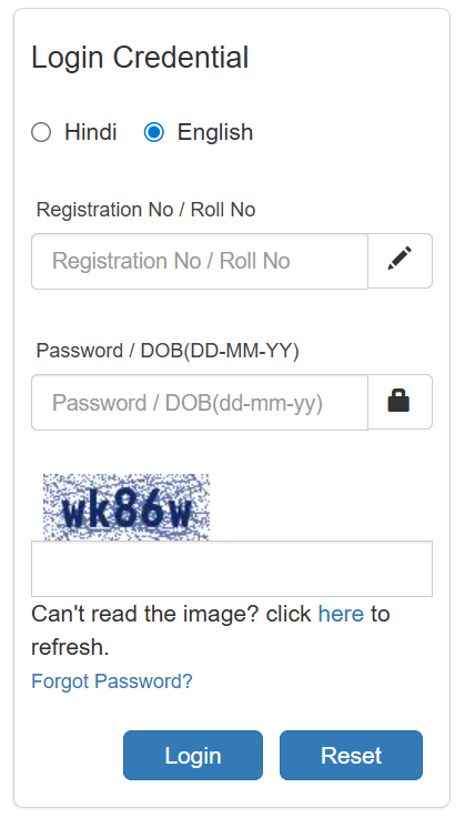 - और आपके सामने एक लॉगिन पेज खुलेगा जिसमे आपको अपना Registration Number/OTR ID, पासवर्ड/Date of Birth और कैप्चर कोड डाल कर सबमिट करे |