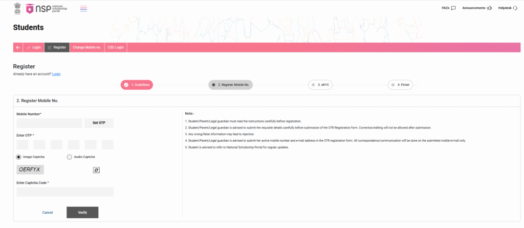 - Apply For One Time Registration (OTR)