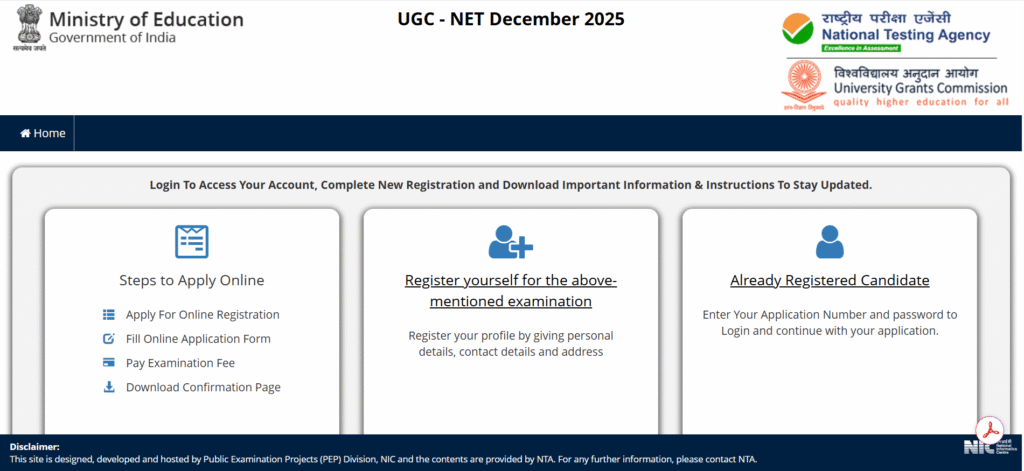 - होम पेज पर NTA UGC NET JRF December 2025 पर क्लिक करें।