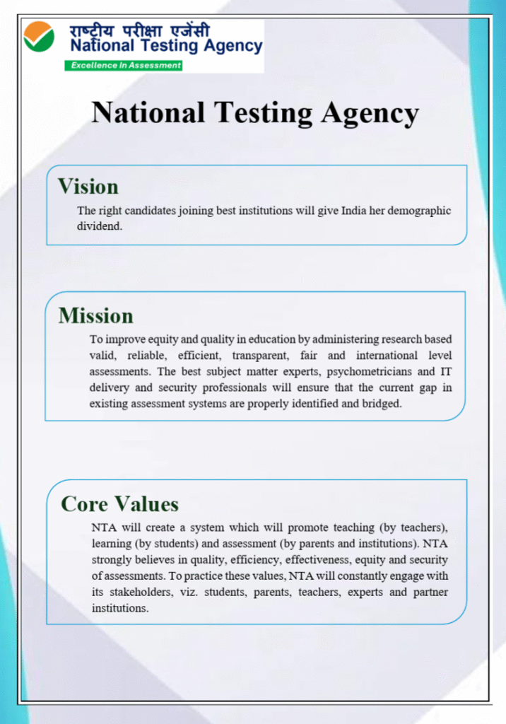 | विभाग का नाम : | राष्ट्रीय परीक्षा एजेंसी (National Testing Agency – NTA) |