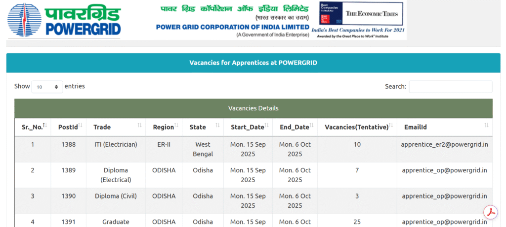 अवलोकन : PGCIL Apprentices Recruitment 2025