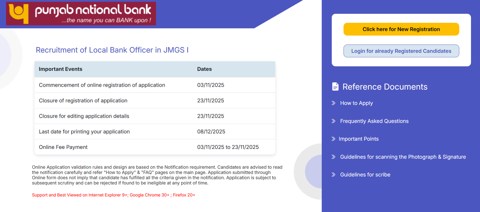महत्वपूर्ण तिथियां : Punjab National Bank LBO Recruitment 2025