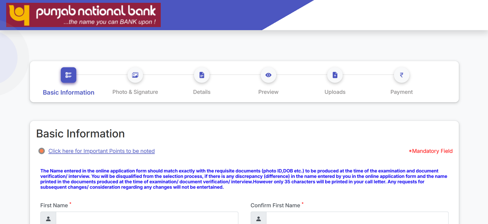 | विभाग का नाम : | Punjab National Bank (PNB) |