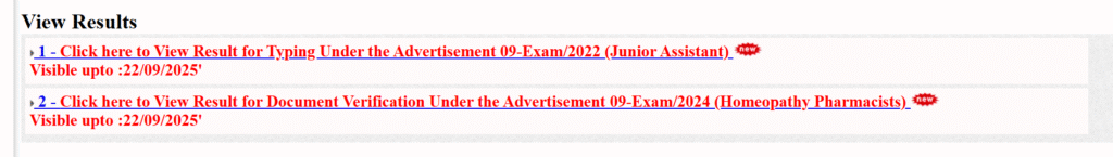 • वहां Junior Assistant Result 2025 (Advt. No. 09/2022) लिंक पर क्लिक करें।